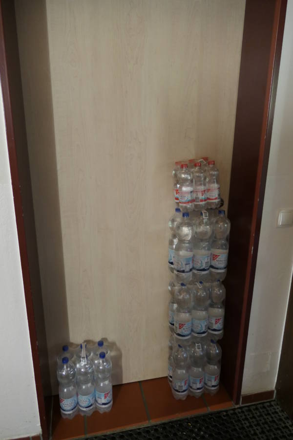 Leider können wir diesmal nicht zum Eishockey gehen, da die Inzeller Mannschaft erst wieder am Sonntag spielt. Da sind wir allerdings schon wieder zu Hause. Lars hat sich mit genügend Wasser für die nächsten Tage versorgt und dies vor seine Tür gestapelt ?.